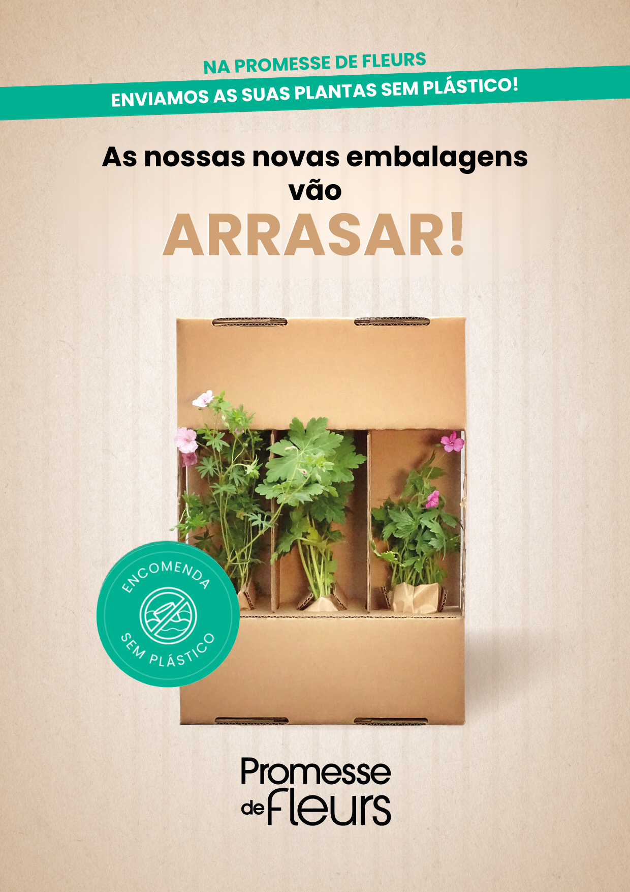 - Para aqueles que ainda não optaram pelo pedido sem plástico, as embalagens e os materiais de proteção e calçamento das plantas são de plástico reciclado e reciclável, com certificação «Blue ocean».